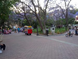 There aren’t a lot of flat, open places for kids to ride bikes. Here is the park we frequent for waking and sitting. Someone rents bikes to kids (and adults) for riding around the park. There’s also occasionally a guy who’ll pull people around like a train using his ATV.