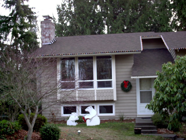 Just for fun, some Christmas decorations on the house. I rebuilt the bears this year because they kept falling over and breaking. So far so good, they survived the big wind storm from last week without any problems.