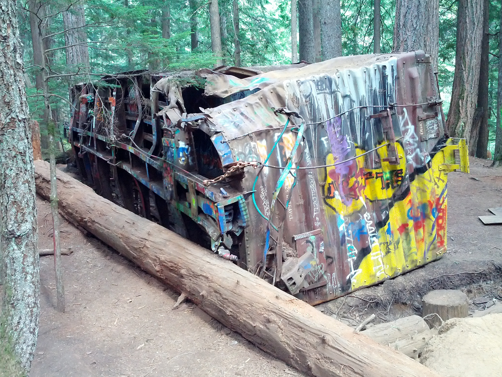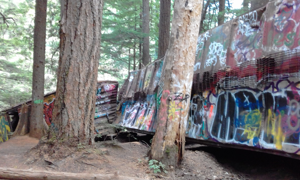 We also stopped at the ‘Train Wreck’. In the 1950’s, a train derailed and rather than right the damaged rail cars, they were pushed into the forest. This was a longer hike than at Brandywine Falls, and it was really getting hot.