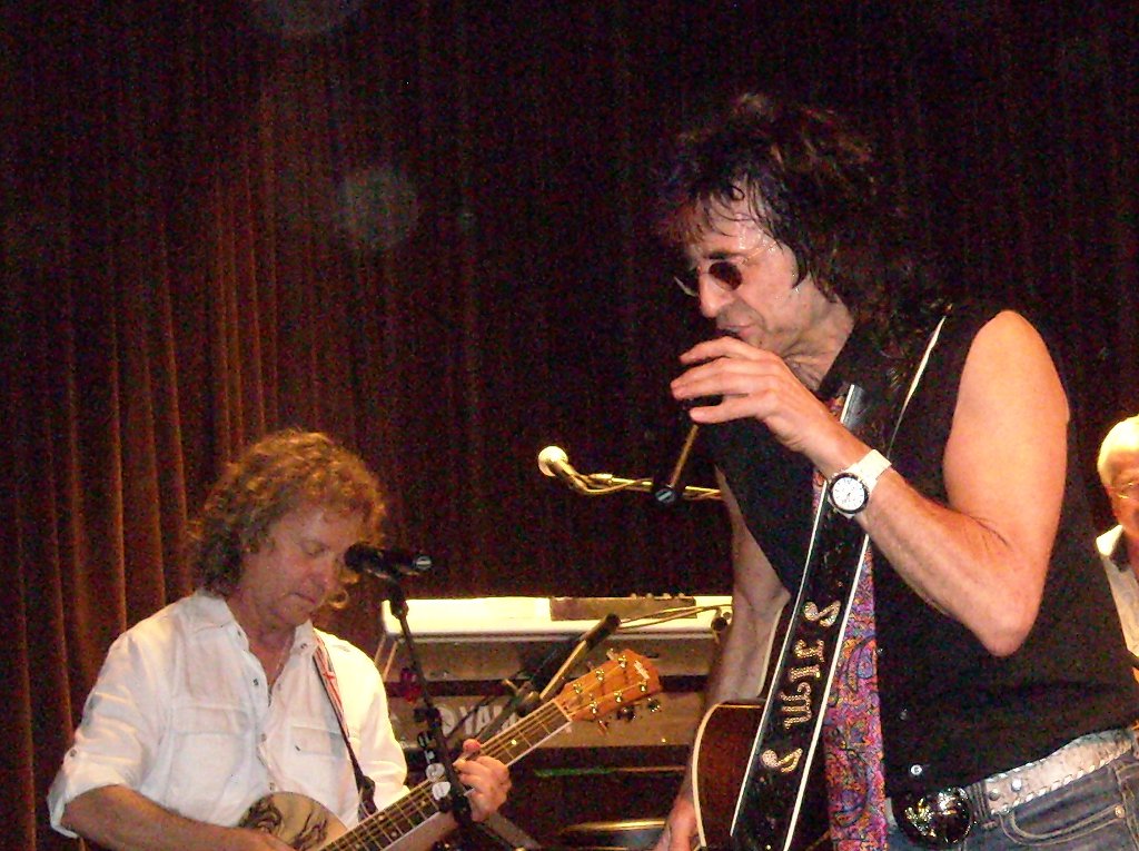 Jim Peterik (Survivor, Ides of March, Pride of Lions) had an “unplugged” concert, with Jack Blades from Night Ranger and Jeff Carlisi from 38 Special. 2 hours of hits. Great show. Here’s Blades and Peterik.
