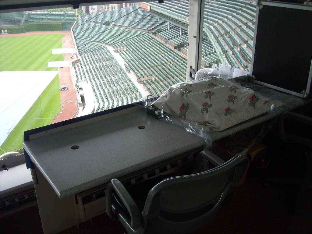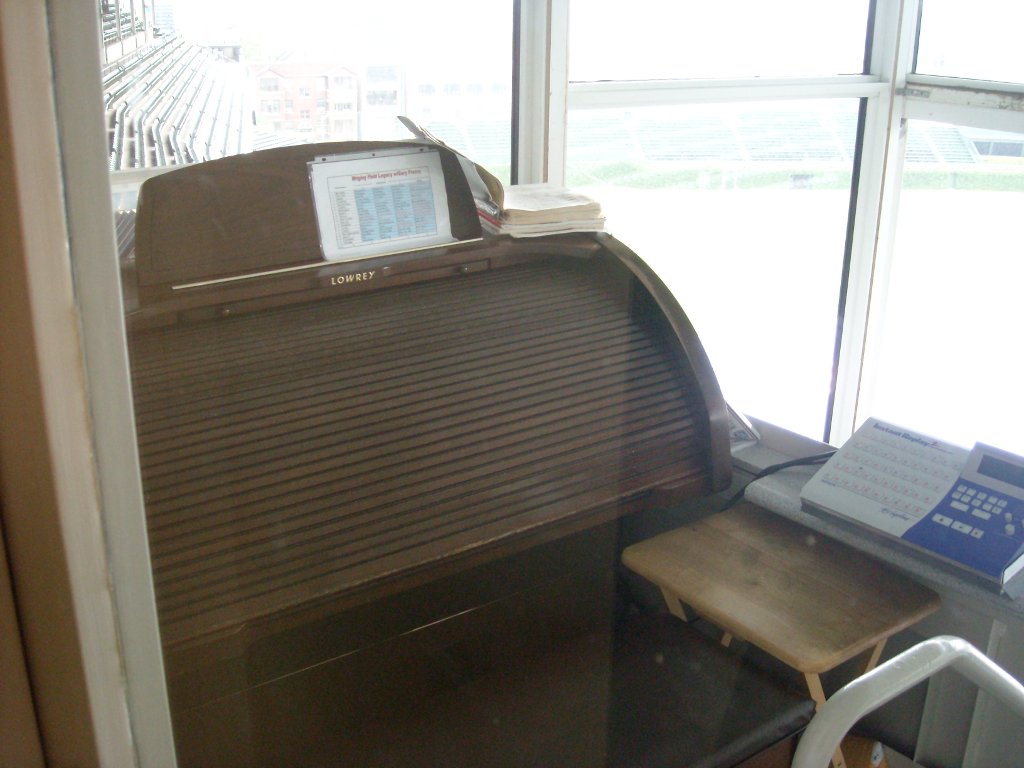 From the press box level, the organ, and Pat and Ron’s booth.