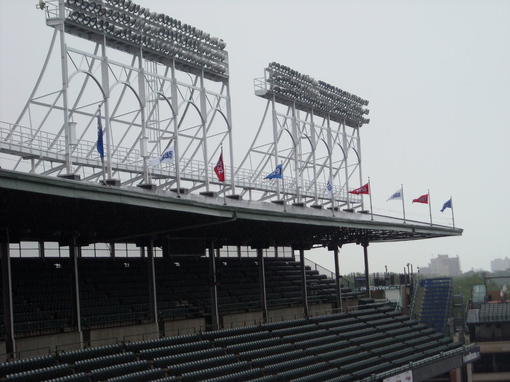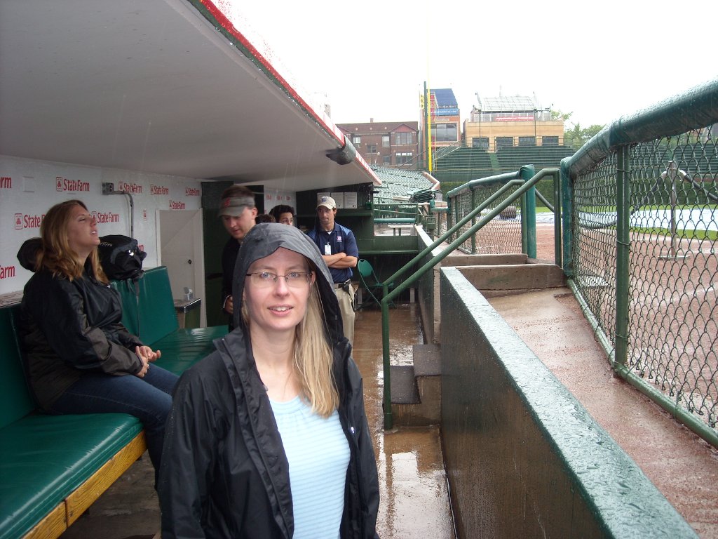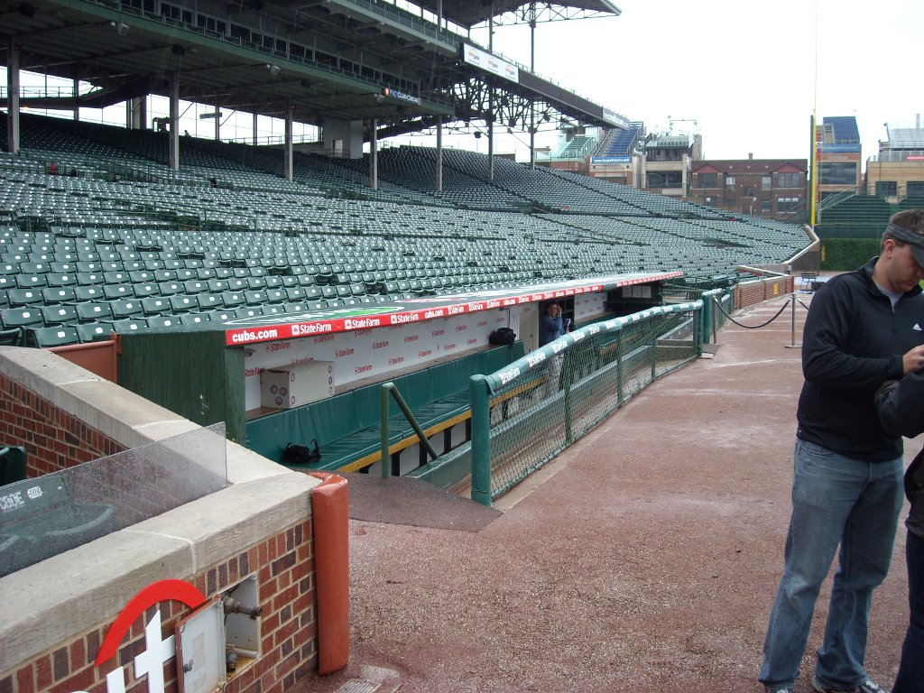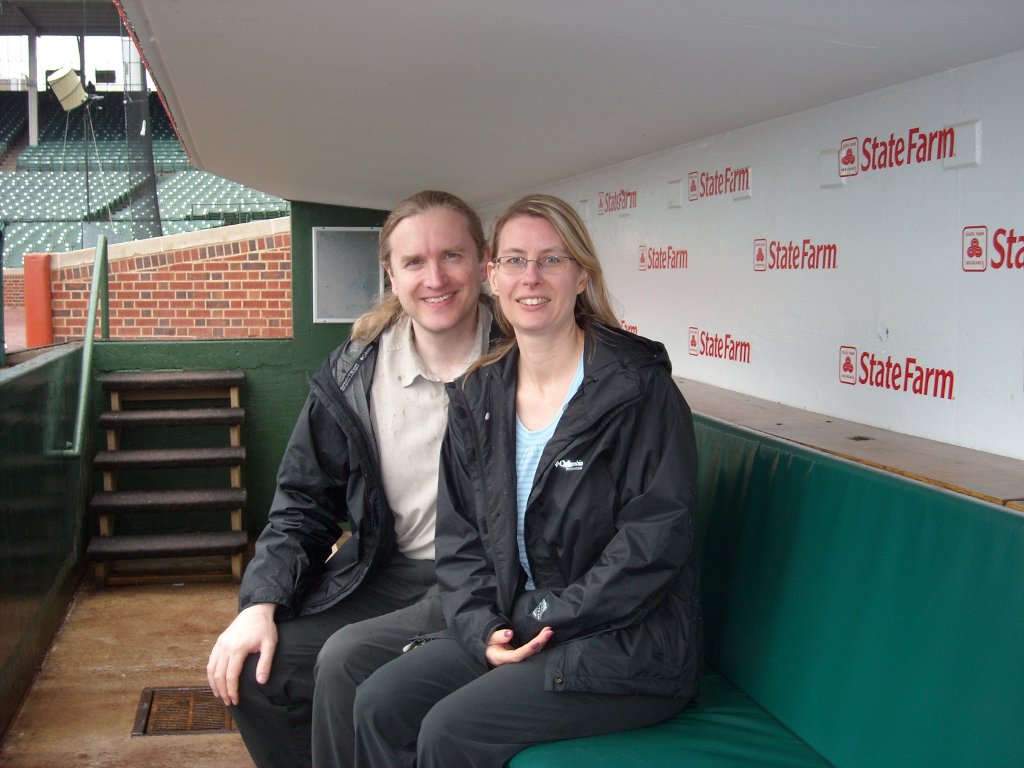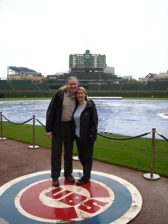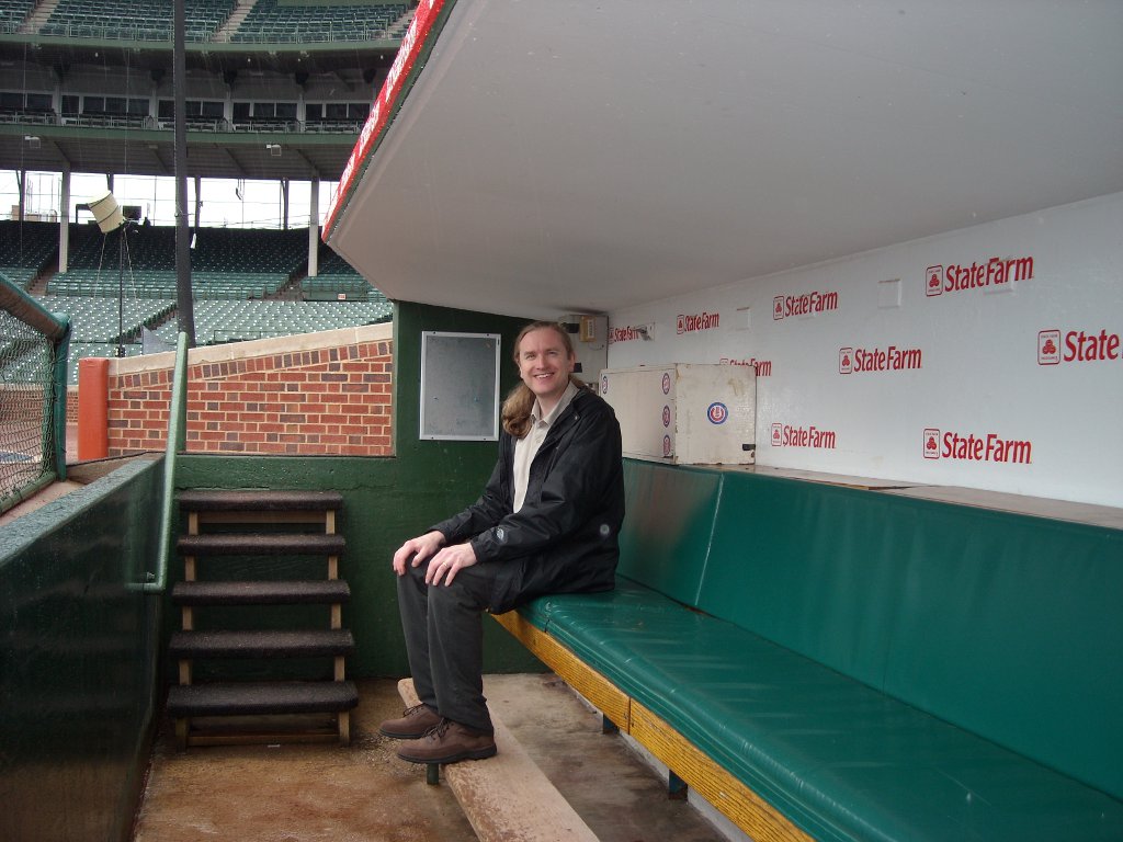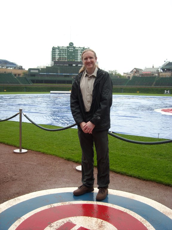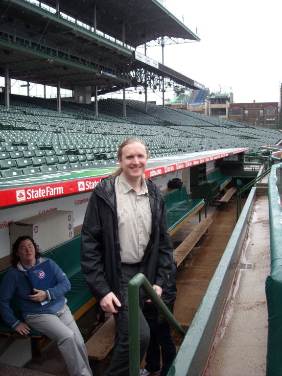Before we caught our flight home, we went on a tour of Wrigley Field. The Cubs were out of town so we got to go inside the Cubs’ and visitor’s club houses, a ‘skybox’, the press box, and in the dugout. I was hoping we’d get to go inside the scoreboard, but no, they say it’s too hard to get into with a group of people. You won’t be able to tell by the pictures below, but the place was a hive of activity. There are a lot of people working even though there is no game today.