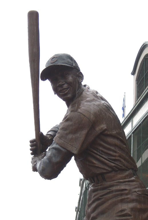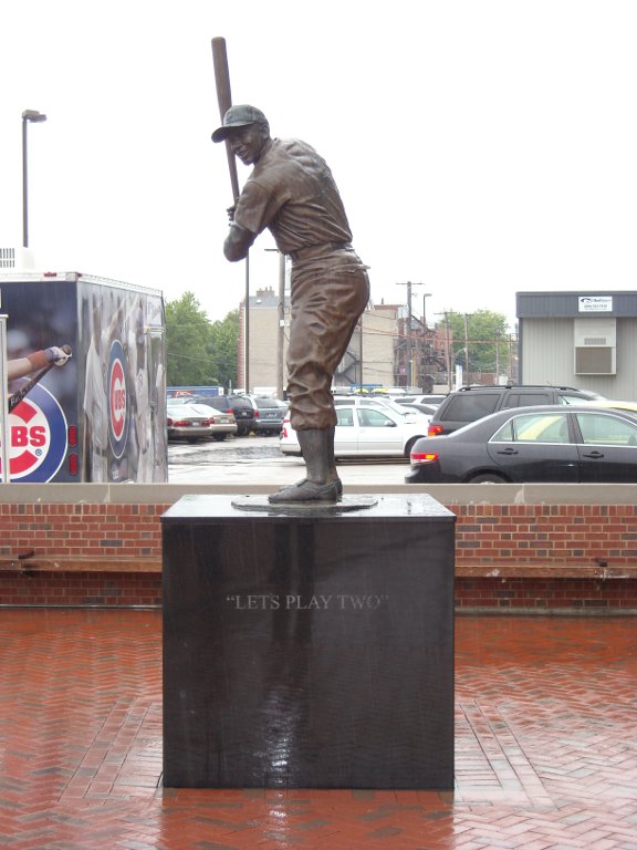 A scary statue of Harry and a not scary statue of Mr. Cub (Ernie Banks)