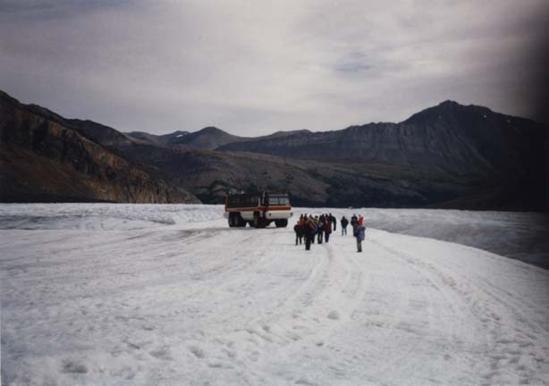 We stayed a couple of nights at the Columbia Icefield Chalet, next to the Columbia Icefield, where you can drive down to (in a mega-bus) and walk on a glacier. The first picture is of the glacier from the hotel, which is across the street.