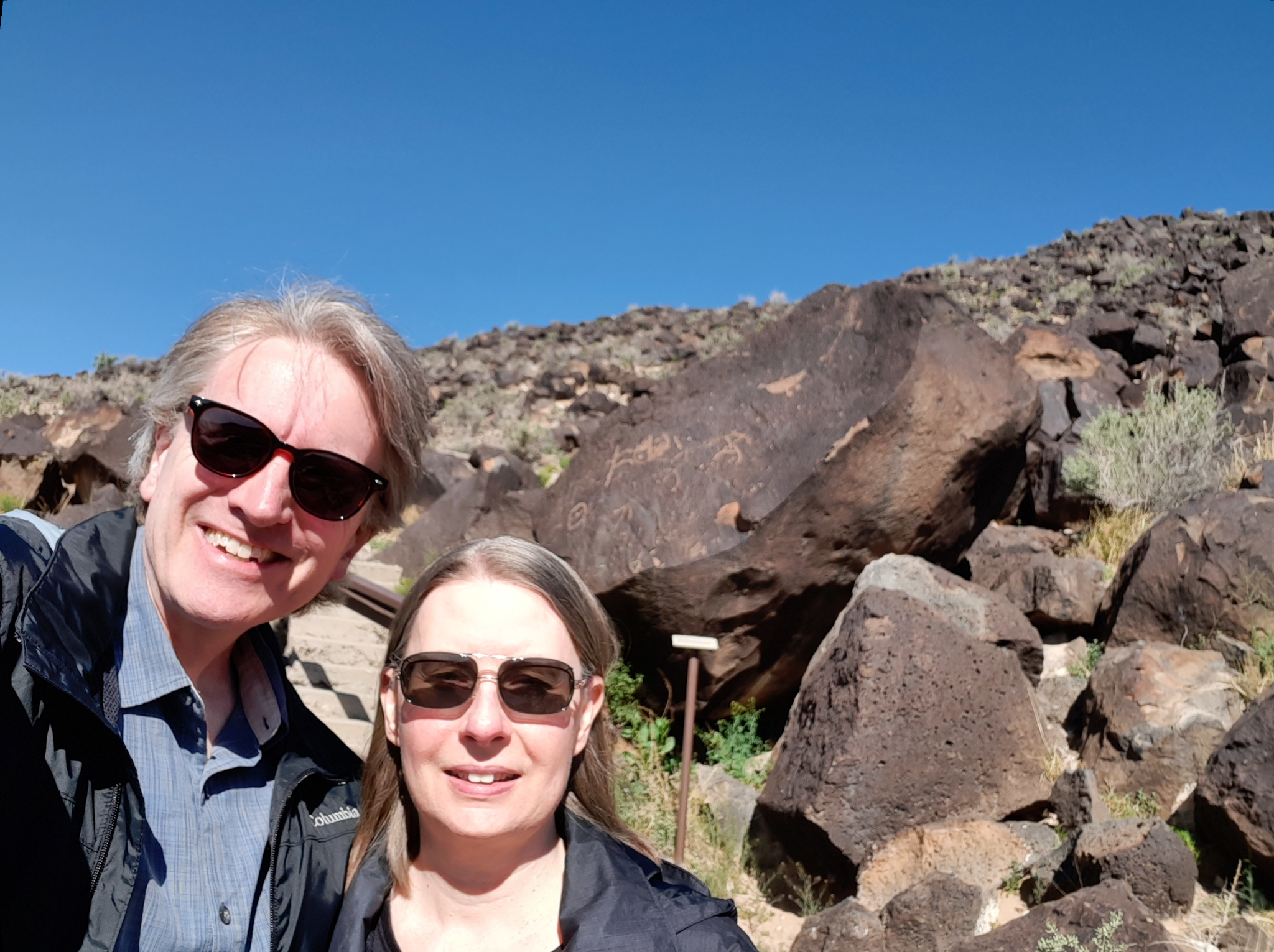 We went to the Boca Negra Canyon portion of the Petroglyph National Monument. It was very sunny and very windy.