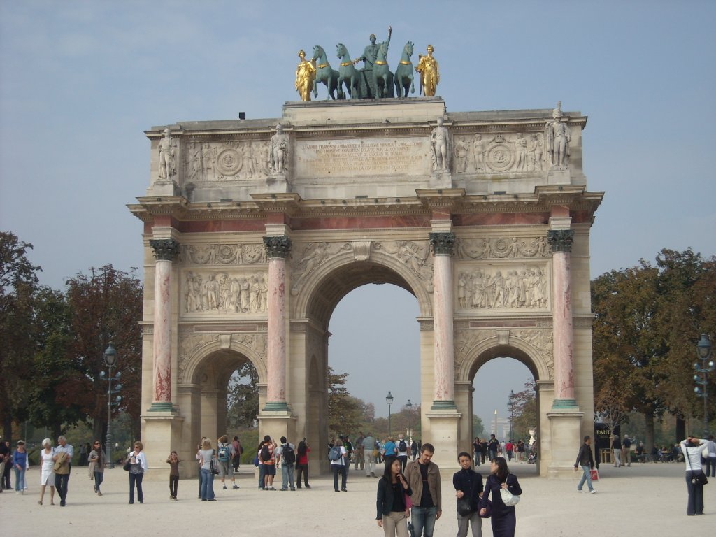 The Louvre and the Arc de Triomphe du Carrousel (a much smaller Arc de Triomphe). The Louvre’s pyramid is where you are supposed to enter the museum, but the line is too long. There’s another way in off Rue de Rivoli, which is north of the Richelieu wing. You enter through a shopping area and buy tickets at a machine, then go through security. We got in so fast, we thought we did something illegal. Thanks to Rick Steves for that tip.