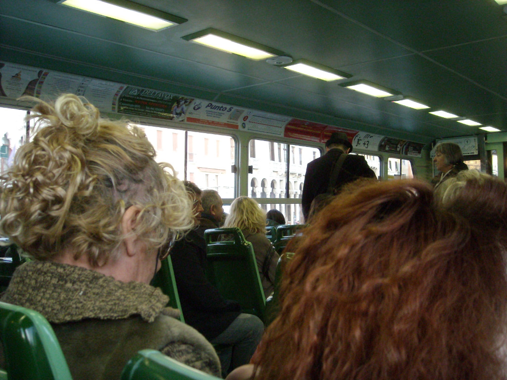 After dinner we took the vaporetto back to our hotel. The water-bus looks like a road-bus on the inside.
