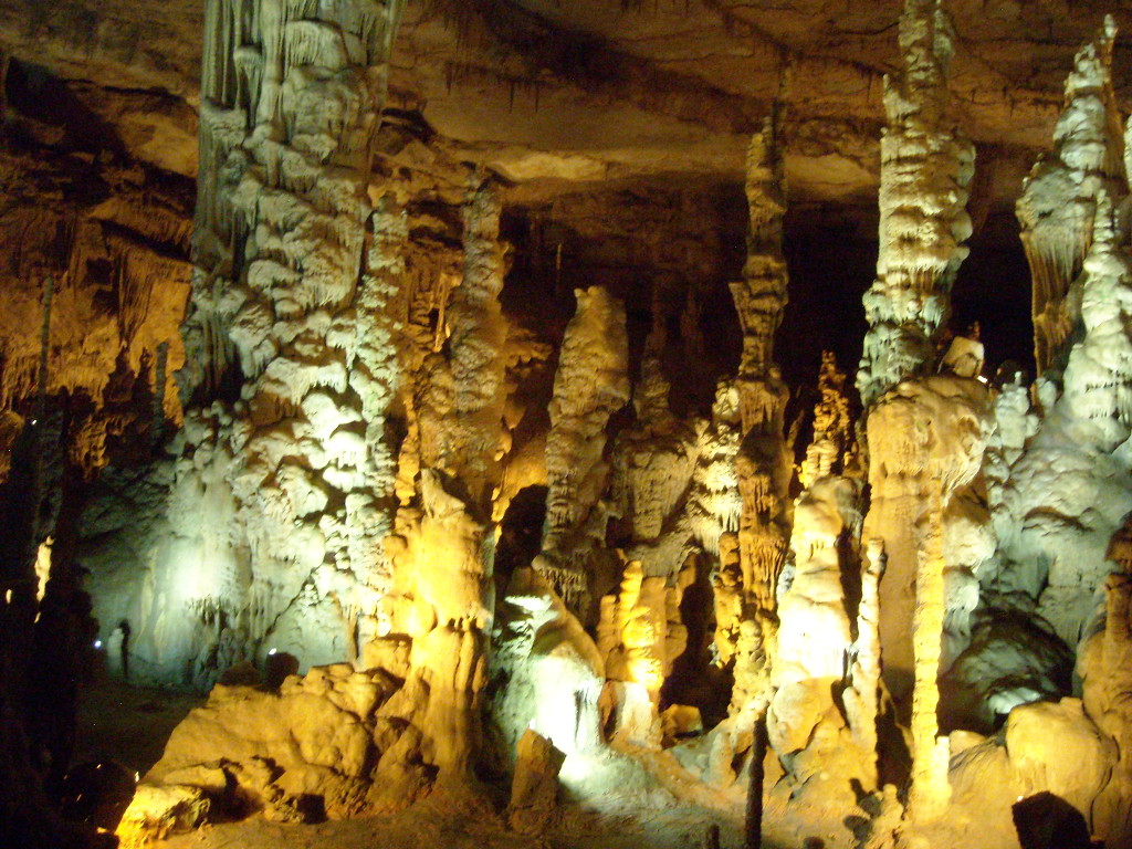 Cathedral Caverns is a large, deep cavern with high ceilings. This was a walking tour on paved walkways. Most of the pictures didn’t come out, as it was very dark. The walls and ceiling of the cavern are not carved, they are natural.